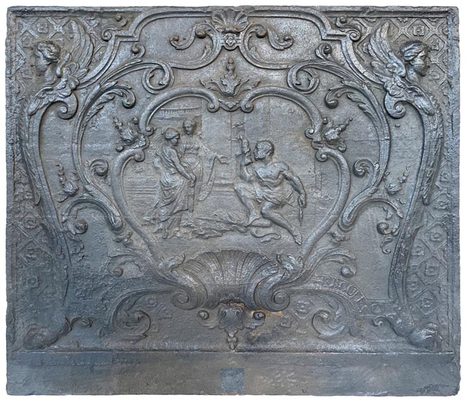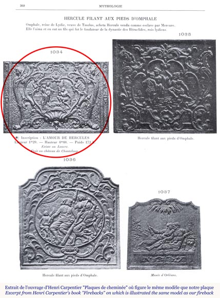 "L'amour d' Hercule", belle plaque de cheminée en fonte d'époque Louis XV