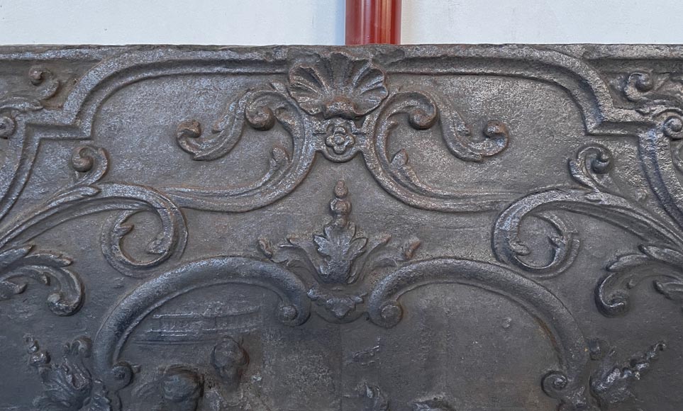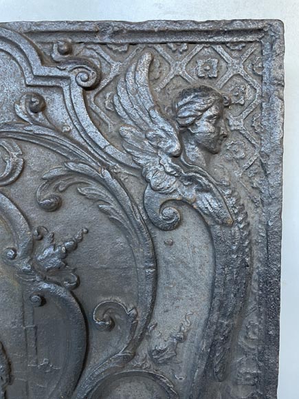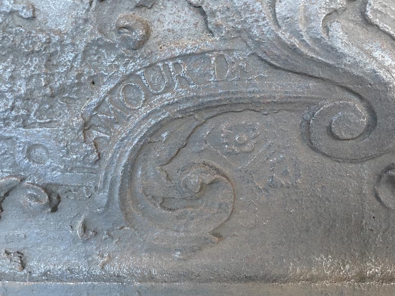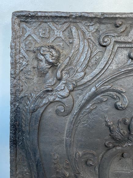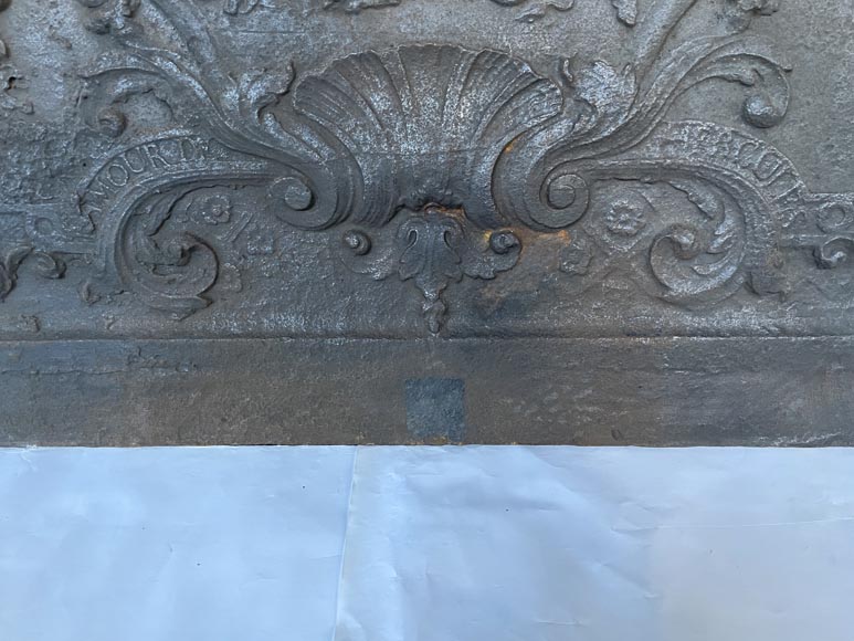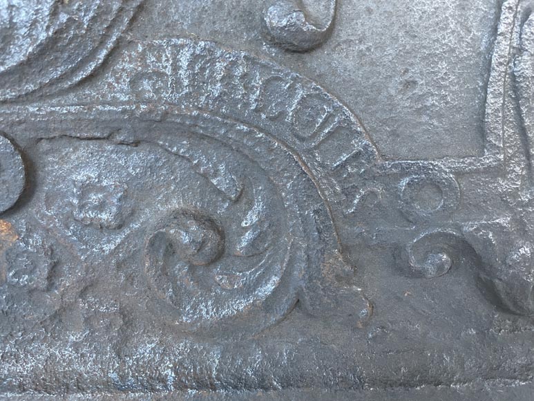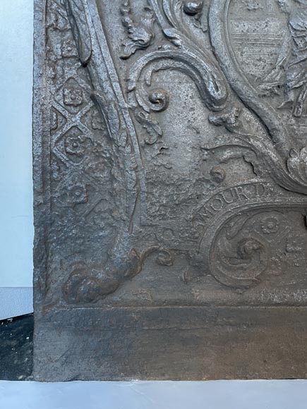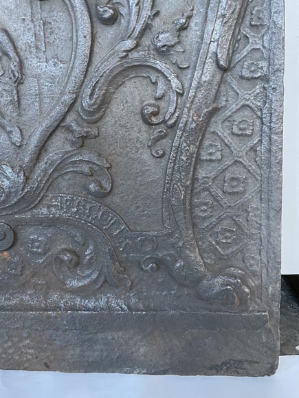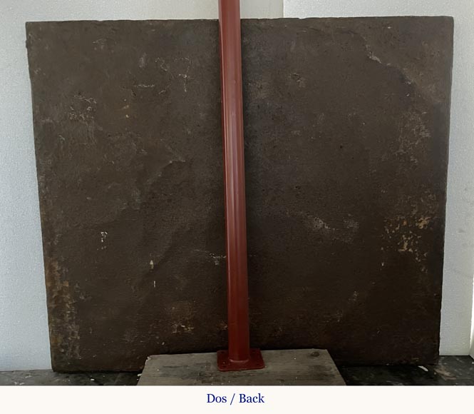 Cette plaque de cheminée ancienne, de grandes dimensions a été réalisée au XVIIIe siècle.