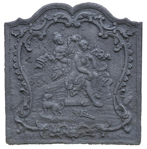 Cette plaque de cheminée de style Louis XV au sujet mythologique a été réalisée au XIXe siècle.