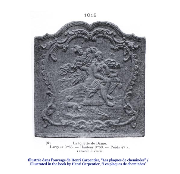 "La Toilette de Diane", plaque de cheminée ancienne du XIXè siècle