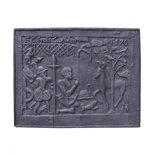 Plaque de cheminée à décor d'un hibou aux ailes déployées signée Lucas et réalisée par la fonderie d'art Stern.
