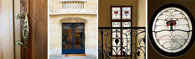 Cet ensemble décoratif est typique du second art nouveau, vers 1910. Il se caractérise ici par une certaine sobriété, atténuant les lignes courbes et les contre-courbes et annonce la transition avec le style art déco qui est amorcé à partir des années 1910. étant donné la grande simplicité dans les formes décoratives, auquel on peut ajouter les quelques lignes sinueuses, cet ensemble est difficilement comparable avec les grands ensembles de décor intérieur de l’ Art Nouveau, bien que l’on retrouve des éléments similaires tels que les boiseries aux angles arrondis, typiques de l’Art Nouveau.